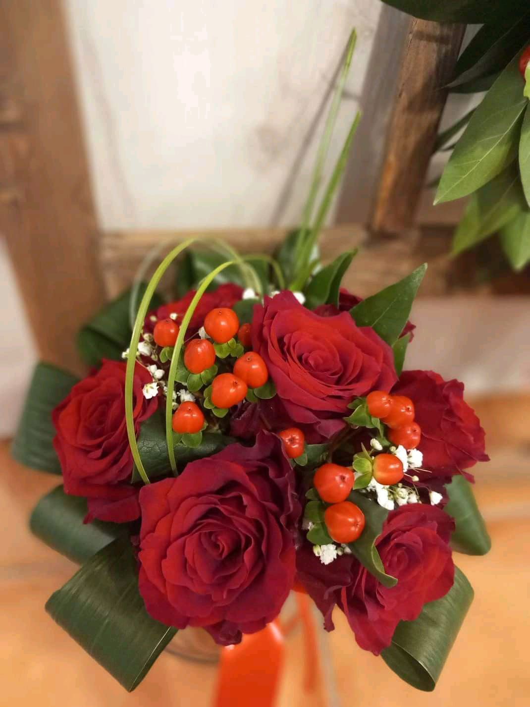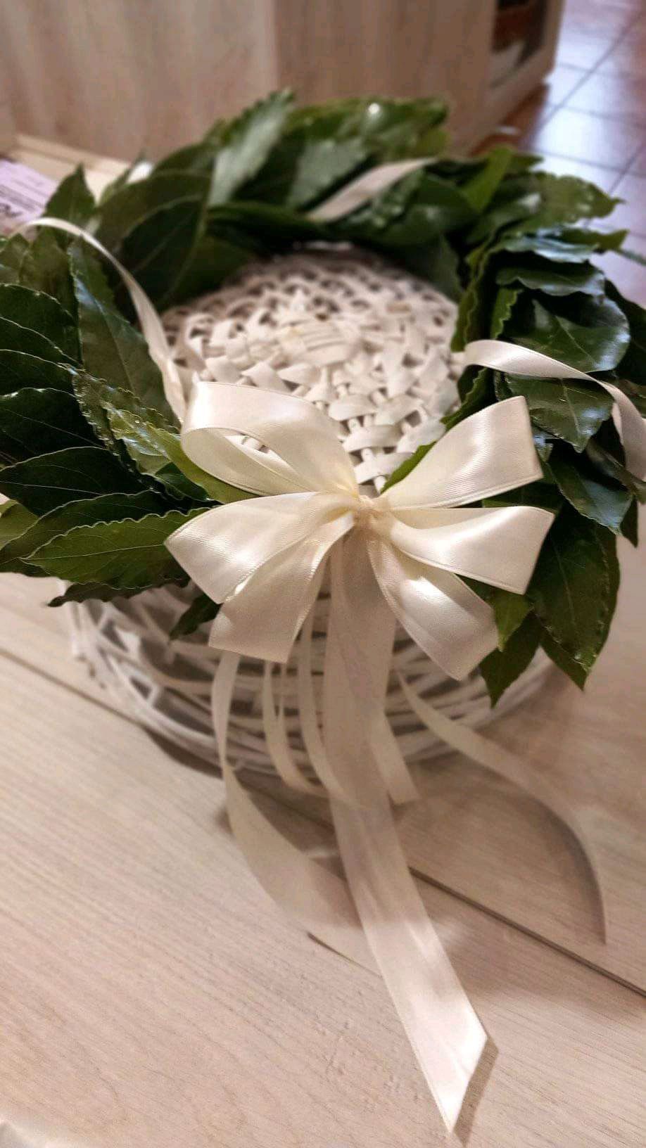 Possiamo realizzare una corona d’alloro completamente personalizzata: combineremo i colori di nastro e bacche, la tipologia di fiori, e le rose che preferisci.